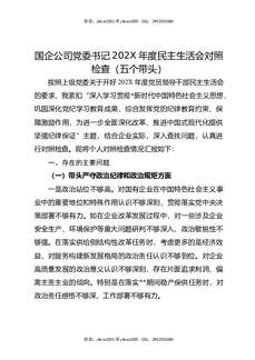 国企公司党委书记202X年度民主生活会对照检查(五个带头).docx