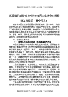 区委组织部部长2025年度民主生活会对照检查发言提纲(五个带头).docx