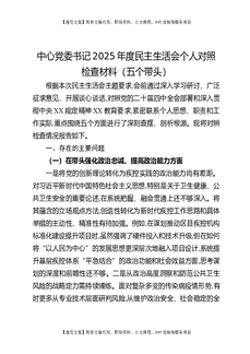 中心党委书记2025年度民主生活会个人对照检查材料(五个带头).docx