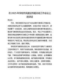 在2025年学校作风建设专题总结工作会议上的讲话.docx