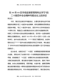 在XX市XX区市场监督管理局传达学习党的二十届四中全会精神专题会议上的讲话.docx