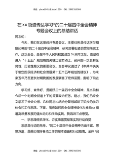在XX街道传达学习党的二十届四中全会精神专题会议上的总结讲话.docx