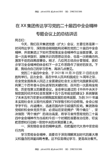 在XX集团传达学习党的二十届四中全会精神专题会议上的总结讲话.docx
