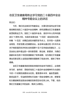 在区卫生健康局传达学习党的二十届四中全会精神专题会议上的讲话.docx