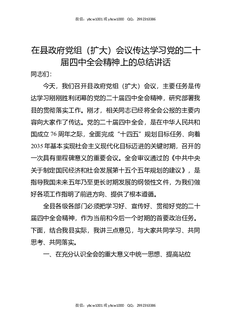 在县政府党组(扩大)会议传达学习党的二十届四中全会精神上的总结讲话.docx