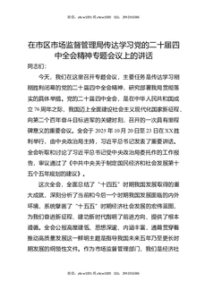 在市区市场监督管理局传达学习党的二十届四中全会精神专题会议上的讲话.docx