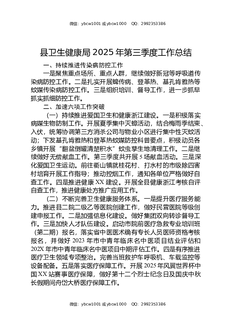 县卫生健康局2025年第三季度工作总结.docx