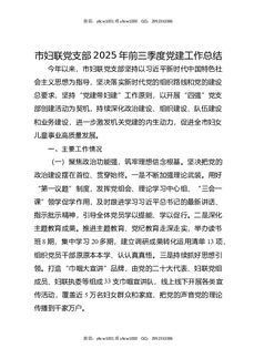 市妇联党支部2025年前三季度党建工作总结.docx