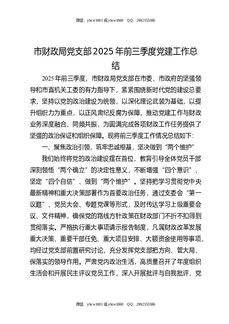市财政局党支部2025年前三季度党建工作总结.docx