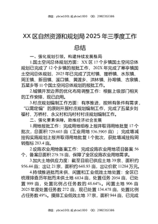 XX区自然资源和规划局2025年三季度工作总结.docx