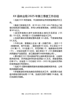 XX县林业局2025年第三季度工作总结.docx