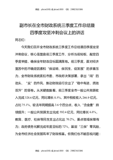 副市长在全市财政系统三季度工作总结暨四季度攻坚冲刺会议上的讲话.docx