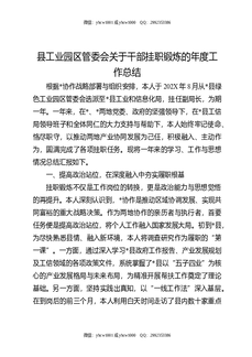 县工业园区管委会关于干部挂职锻炼的年度工作总结.docx