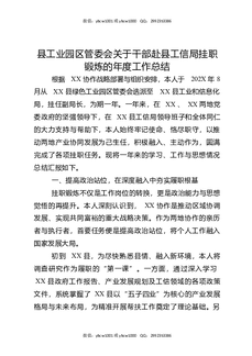 县工业园区管委会关于干部赴县工信局挂职锻炼的年度工作总结.docx