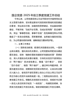 国企党委2025年前三季度党建工作总结.docx