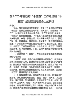 在2025年县政府“十四五”工作总结和“十五五”规划思路专题会上的讲话.docx