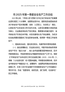 市2025年第一季度安全生产工作总结.docx