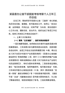 某县委办公室干部提拔考核考察个人三年工作总结.docx