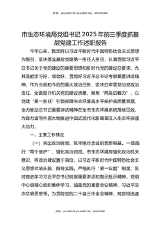 市生态环境局党组书记2025年前三季度抓基层党建工作述职报告