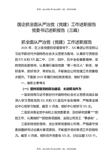 国企抓全面从严治党(党建)工作述职报告党委书记述职报告(三篇).docx