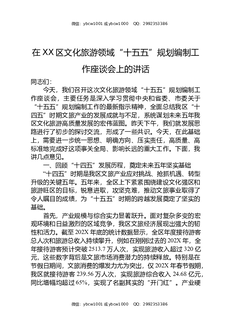 在XX区文化旅游领域“十五五”规划编制工作座谈会上的讲话.docx