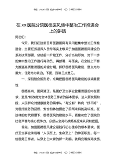 在XX医院分院医德医风集中整治工作推进会上的讲话.docx