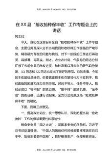 在XX县“抢收抢种保丰收”工作专题会上的讲话.docx