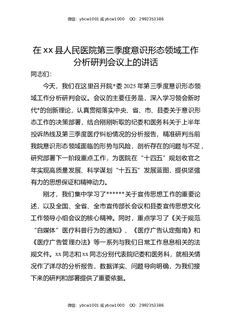 在XX县人民医院第三季度意识形态领域工作分析研判会议上的讲话.docx
