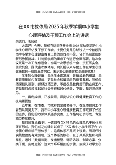在XX市教体局2025年秋季学期中小学生心理评估及干预工作会上的讲话.docx