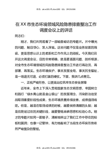 在XX市生态环境领域风险隐患排查整治工作调度会议上的讲话.docx