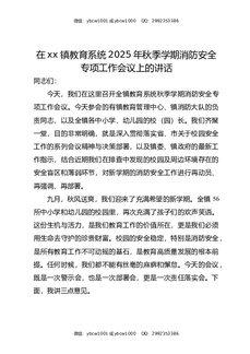 在XX镇教育系统2025年秋季学期消防安全专项工作会议上的讲话.docx