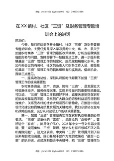 在XX镇村、社区“三资”及财务管理专题培训会上的讲话.docx