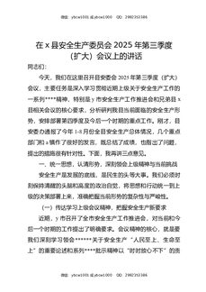 在X县安全生产委员会2025年第三季度(扩大)会议上的讲话.docx