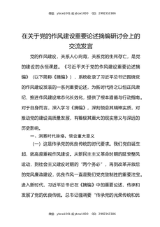 在关于党的作风建设重要论述摘编研讨会上的交流发言.docx