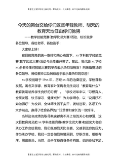 教学技能竞赛(教学比武大赛)活动,校长致辞今天的舞台交给你们这些年轻教师,明天的教育天地任由你们驰骋.doc