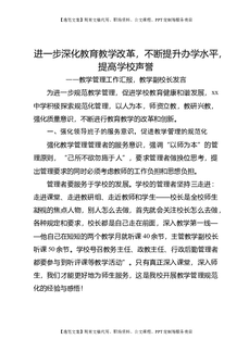 教学管理工作汇报,教学副校长发言进一步深化教育教学改革,不断提升办学水平,提高学校声誉.doc