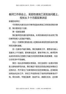教师工作例会上,奖励性绩效工资发放问题上,校长从5个方面发表讲话.doc