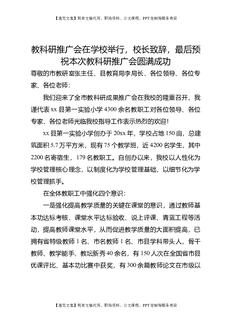 教科研推广会在学校举行,校长致辞,最后预祝本次教科研推广会圆满成功.doc
