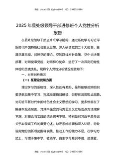 2025年县处级领导干部进修班个人党性分析报告.docx