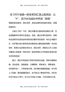 2025级高一新生军训汇演上的讲话:让“X”,在汗水与成长中开启“新程”.docx