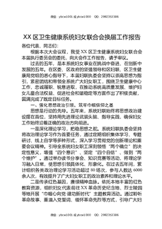 XX区卫生健康系统妇女联合会换届工作报告.docx