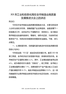 XX市工业和信息化局在全市制造业高质量发展推进大会上的讲话.docx