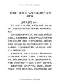 2025年入党介绍人意见发言稿汇编(10篇).docx