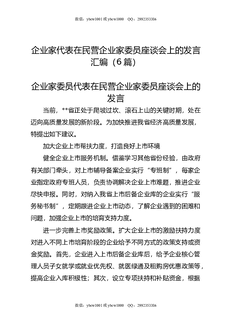 企业家代表在民营企业家委员座谈会上的发言汇编(6篇).docx