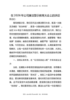在2026年公司廉洁警示教育大会上的讲话.docx