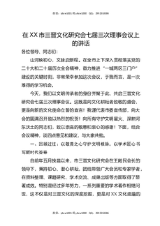在XX市三晋文化研究会七届三次理事会议上的讲话.docx