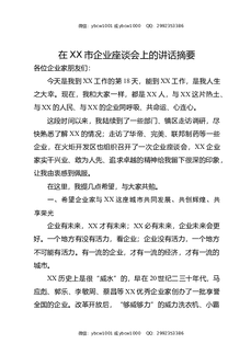 在XX市企业座谈会上的讲话摘要.docx
