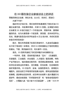 在XX籍在渝企业家座谈会上的讲话.doc
