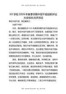 XX学校2026年春季学期中层干部述职评议大会校长点评讲话.doc