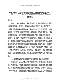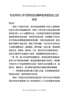 在全市深入学习贯彻党的全会精神宣讲会议上的讲话.docx